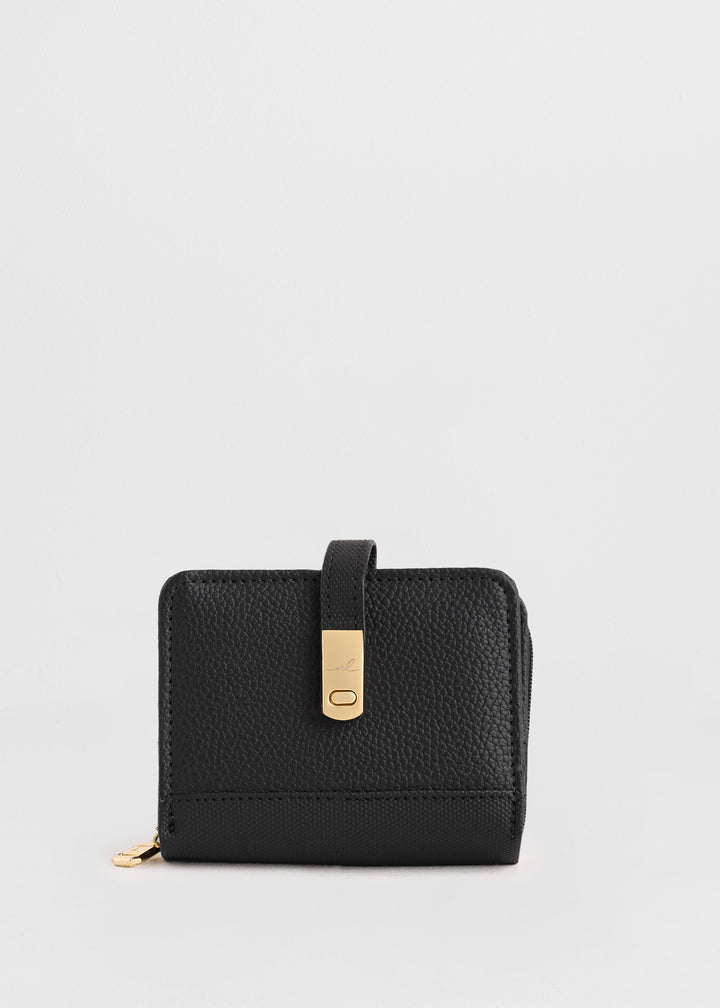 La Billetera London Negro está elaborada en cuero sintético de alta calidad con textura suave y resistente, diseñada en un formato compacto y elegante que combina estilo clásico con un toque moderno gracias a su broche metálico dorado con grabado sutil.
