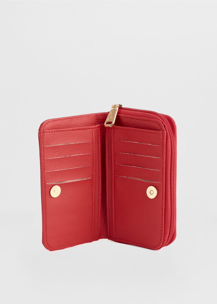 La Billetera Milenial Rojo está confeccionada en cuero sintético con acabado texturizado, ofreciendo un estilo moderno y llamativo en un diseño compacto. Su interior cuenta con múltiples compartimientos para tarjetas, bolsillos adicionales y cierre en cremallera que brinda mayor seguridad para llevar dinero y documentos.