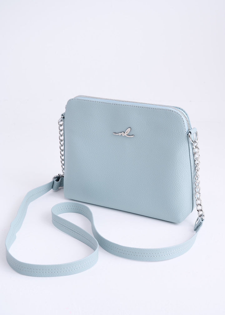 Este manos libres es el complemento ideal para quienes buscan practicidad sin renunciar al estilo. Con un diseño minimalista y elegante, está elaborado en lona pvc con textura suave, ofreciendo una apariencia moderna y sofisticada. Su asa ajustable, con detalle de cadena metálica en los extremos, añade un toque contemporáneo que lo hace destacar.