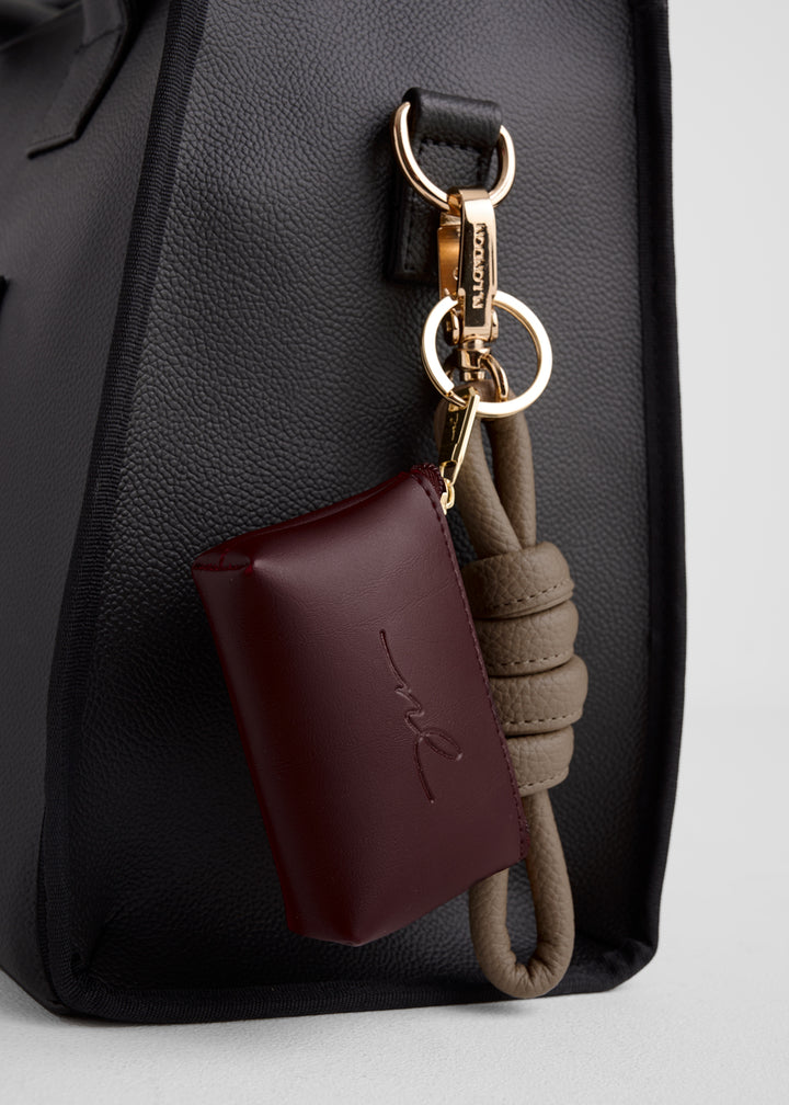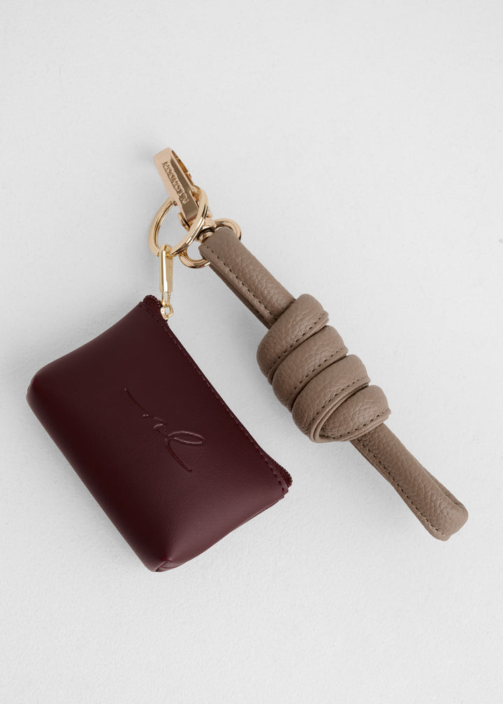 Un toque chic para tus accesorios. Este llavero está diseñado con doble lazo y acabado acolchado que le da un look moderno y llamativo. Ideal para colgar en tu bolso, estuche o llaves.