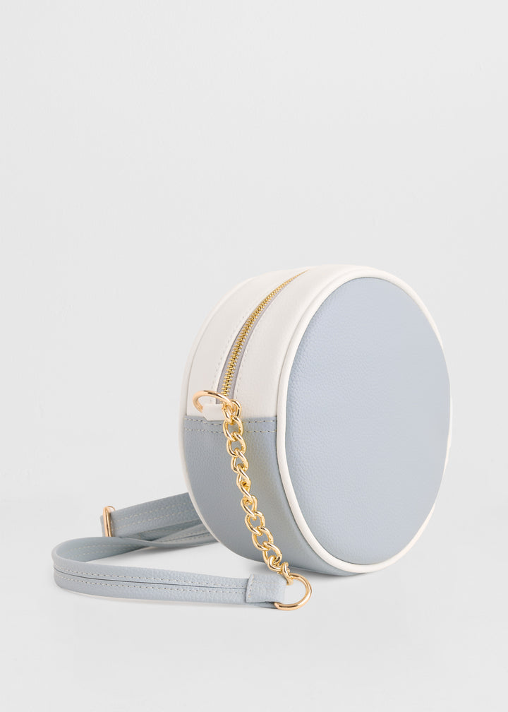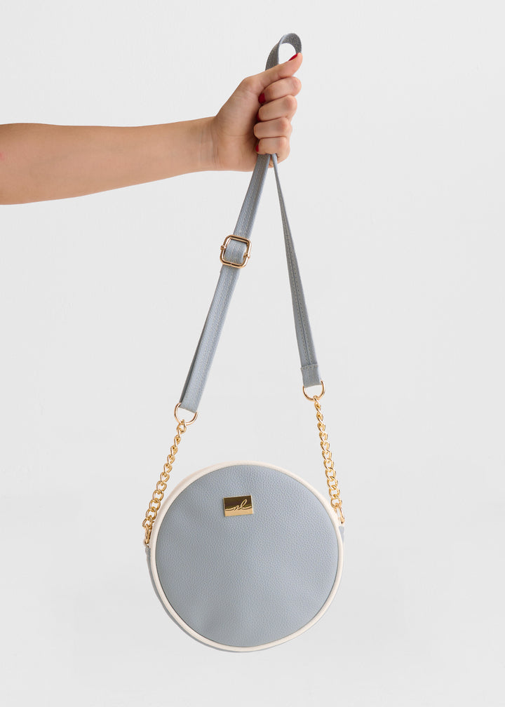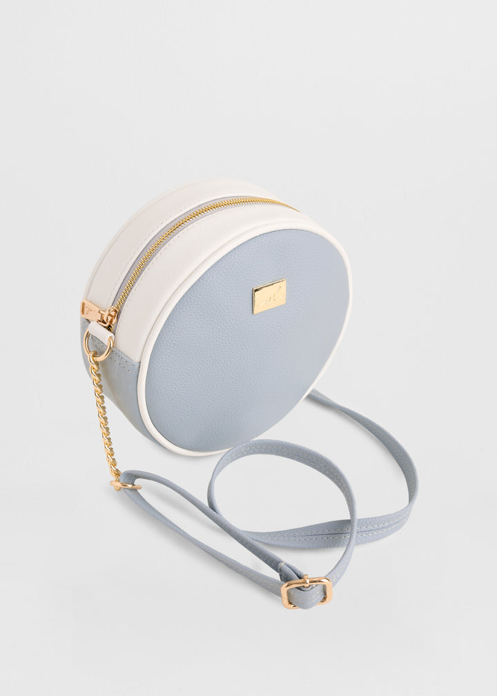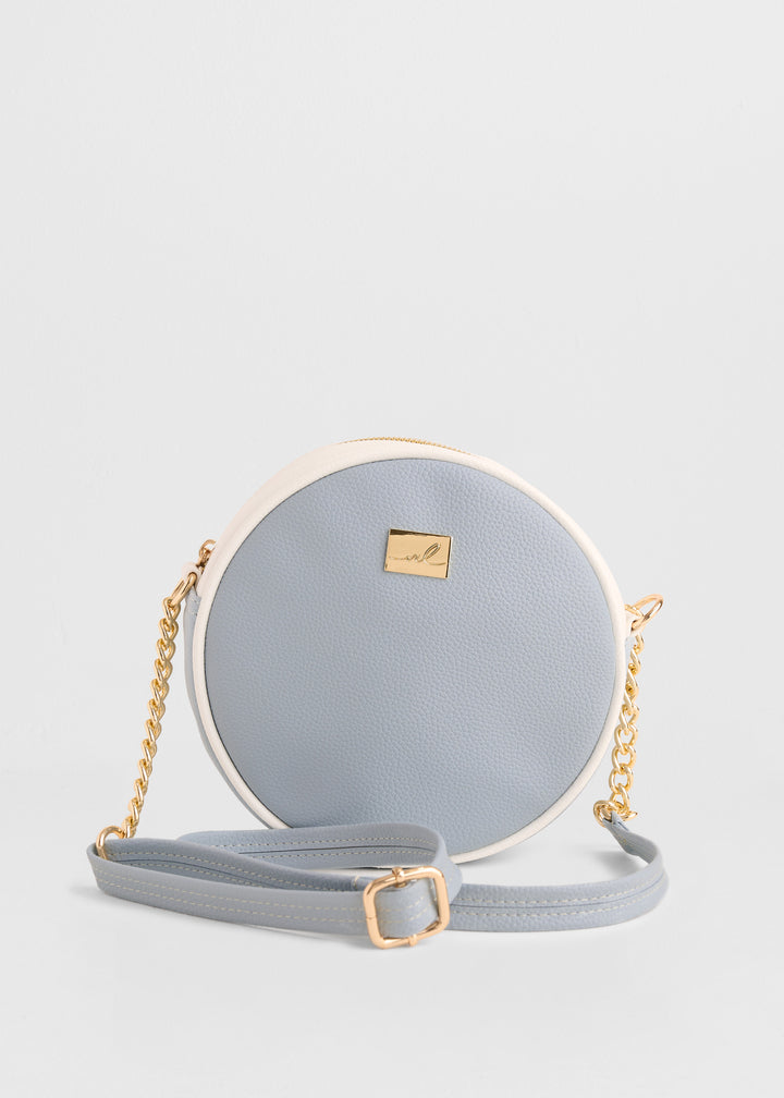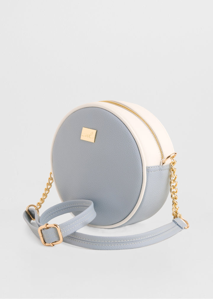 El Manos Libres Bryce combina originalidad y practicidad en un diseño circular que no pasa desapercibido. Confeccionado en material sintético texturizado, destaca por su tonalidad miel contrastada con bordes beige claro, lo que le da un toque elegante y moderno. Su cadena dorada se complementa con una asa larga ajustable para mayor comodidad, mientras que el cierre superior con cremallera mantiene tus objetos seguros.
