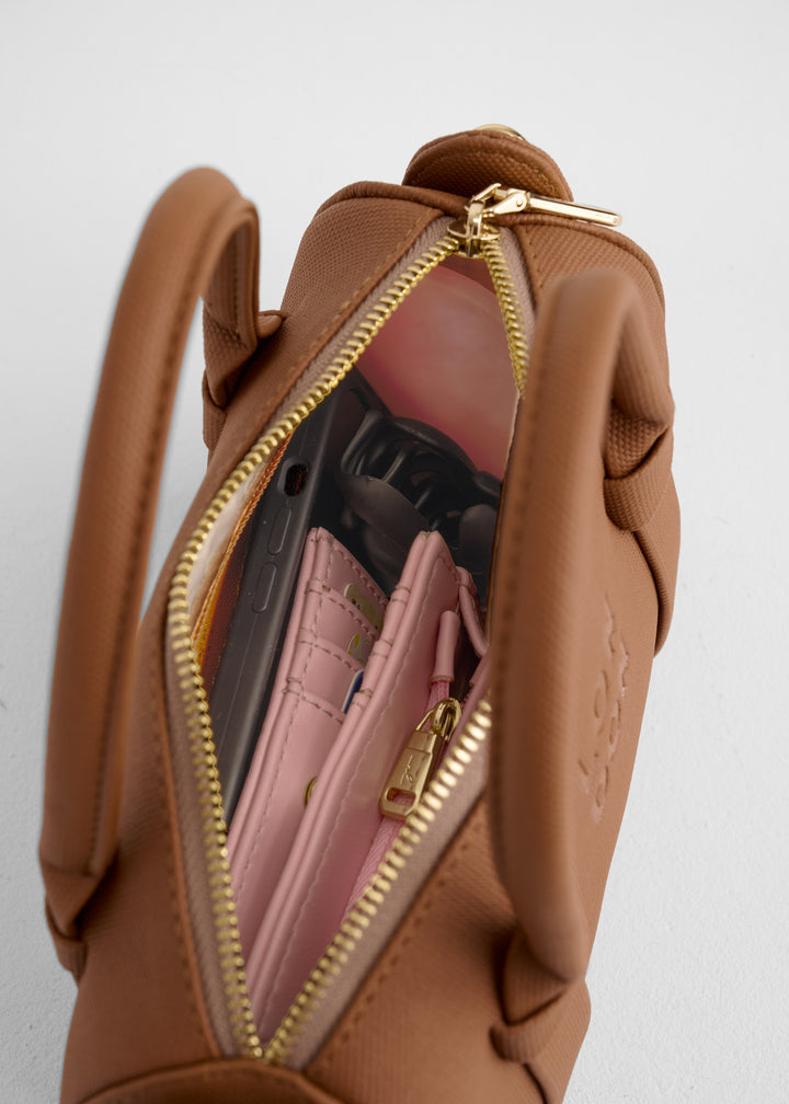 Dale un toque dulce y moderno a tu look con la Mini Cartera Ermita. Su diseño tipo baúl en material tipo cuero con textura suave y acabado mate la hace ideal para llevar lo esencial con estilo. Cuenta con asas superiores firmes y una correa ajustable y removible con detalle de franjas, que te permite usarla cruzada o al hombro según tu preferencia.