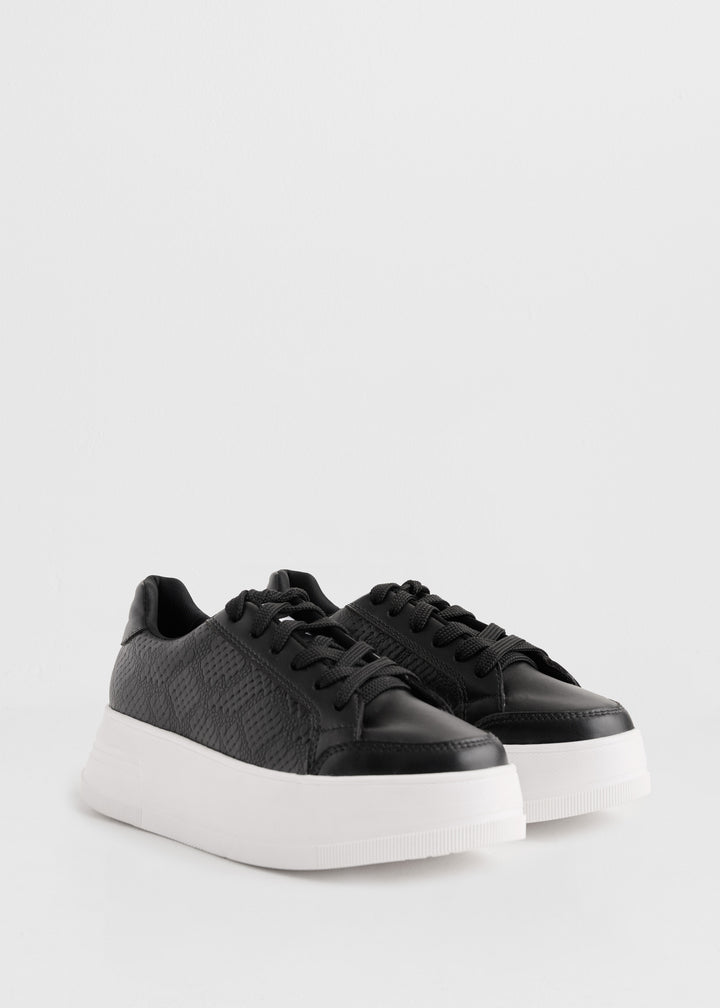 Los Tenis Capri Negro son una propuesta minimalista y versátil, diseñados para elevar cualquier look con su estilo limpio y moderno. Están elaborados en microfibra con acabado tipo piel y textura sutil, lo que les aporta un toque sofisticado sin perder frescura.