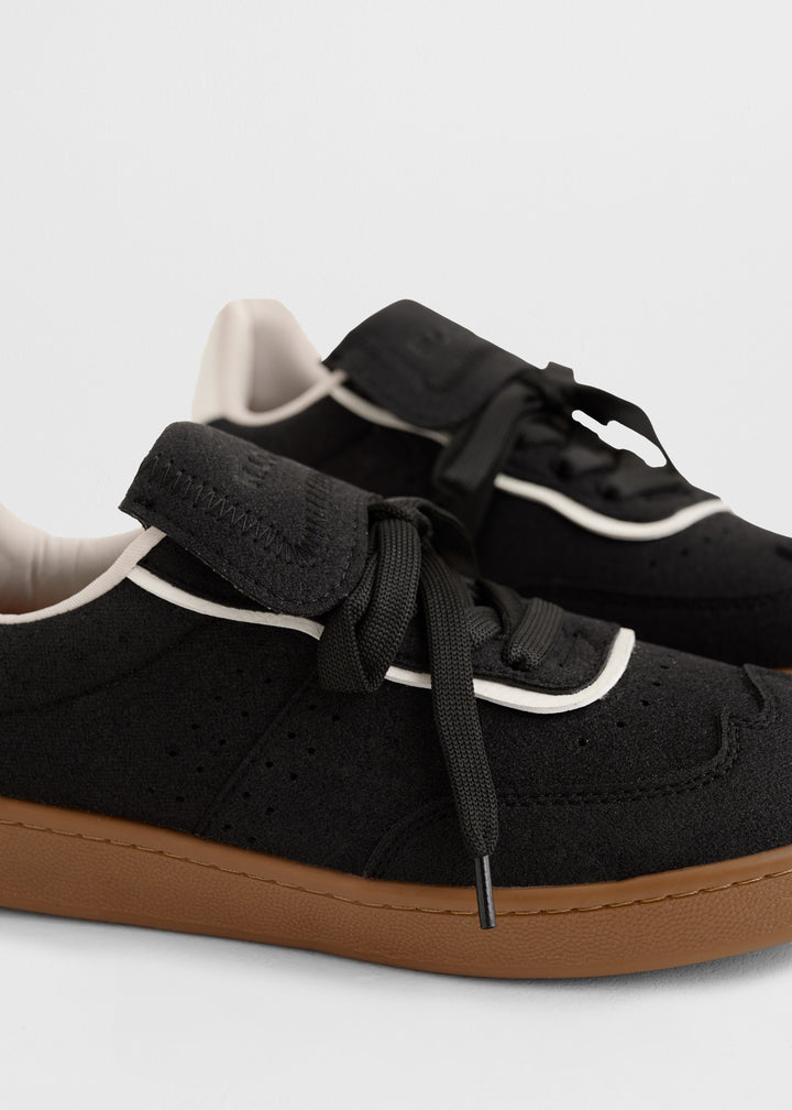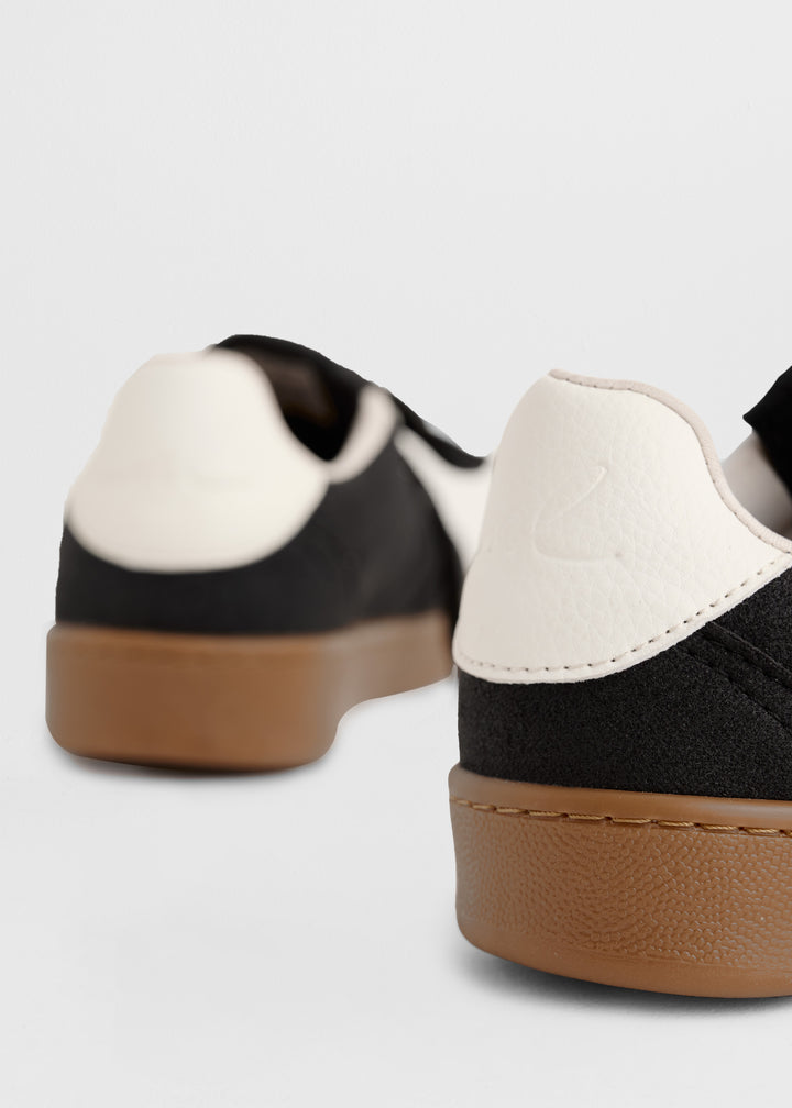 Estos tenis de estilo retro combinan lo mejor del diseño vintage con la comodidad que necesitas en el día a día. Están confeccionados en cuero vegano y gamuza suave, con una lengüeta acolchada bordada y pasadores horribles que refuerzan su estética urbana.