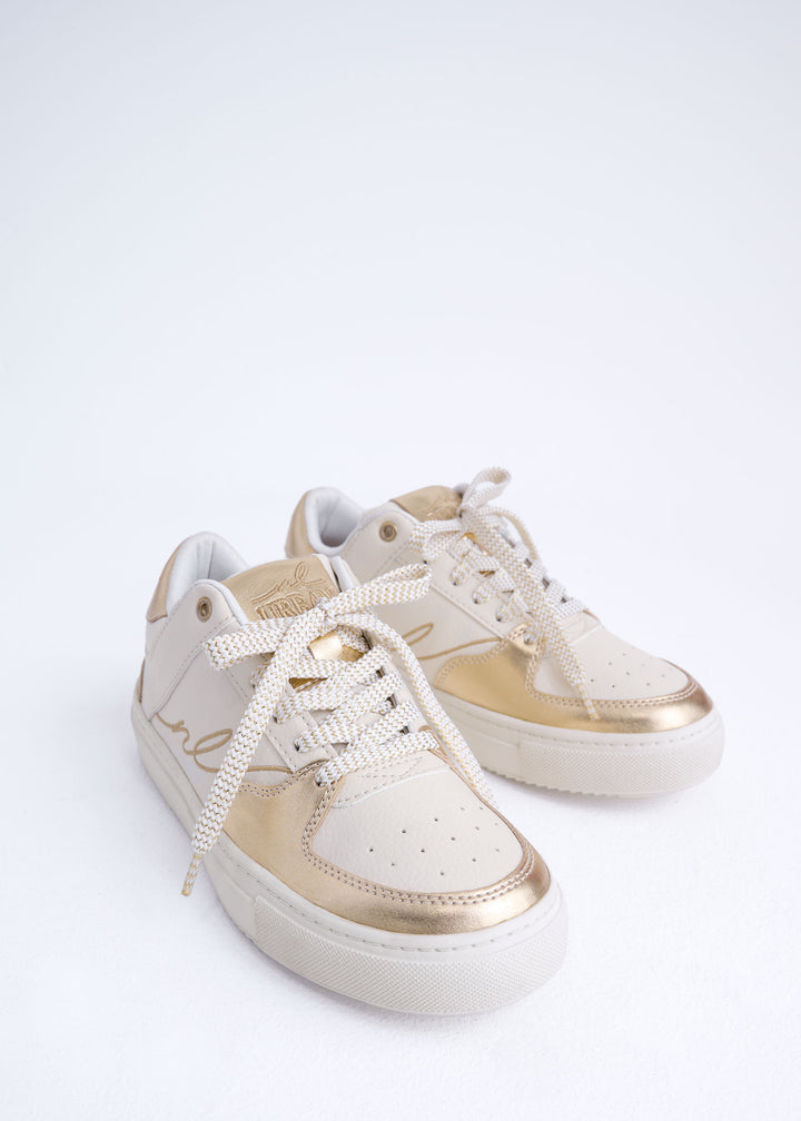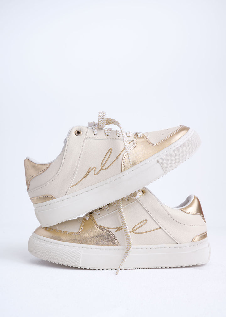 • Detalles: Cordones con diseño trenzado en tonos neutros y detalle de firma decorativa.